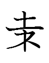 resembles a KLS character 山 atop 禾+丶 | <fi> | (none; phonogram) | <fi.bun> 'lamp', <a.fi> 'lion', <o.fi> 'because' | cf. Manchu ofi 'because' < o- 'be' + subordinative (perfective) converb -fi |