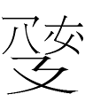 Resembles a Khitan large script character 一 atop 厶 x 2 atop ㅈ | ? | |||